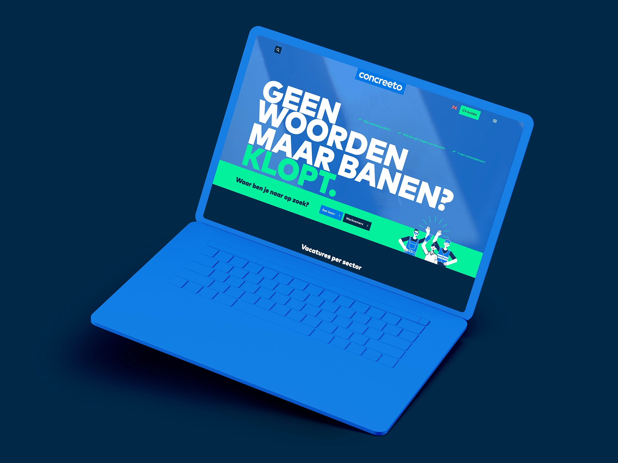 Voor ons begon het dus bij de marketing, maar al snel raakten onze andere disciplines ook betrokken. Zo ontwikkelde ons developmentteam in 2024 een nieuwe website. Deze is technisch geoptimaliseerd, is beter leesbaar en scoort daardoor hoger in Google. Ook voegden we enkele functies toe die passen bij de branche waarin Concreeto actief is. Denk aan automatische vertalingen voor de vele buitenlandse uitzendkrachten en sollicitaties die overzichtelijk in het systeem van Concreeto binnenkomen.